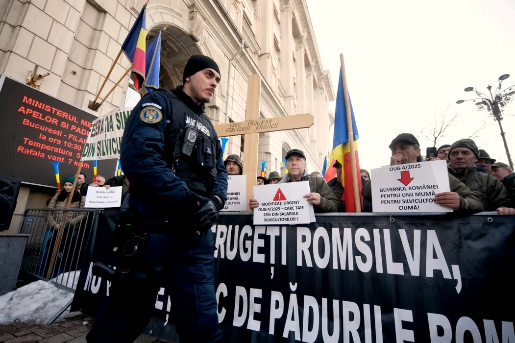 Silvicultorii au ieșit în stradă din cauza tăierilor de salarii. Protestul din fața Ministerului Mediului va dura până la ora 13.00