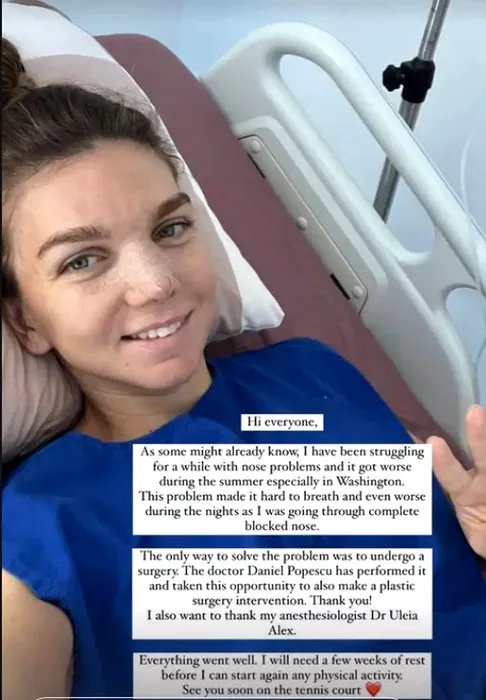 Simona Halep a fost operată la nas / Sursa foto: Instagram