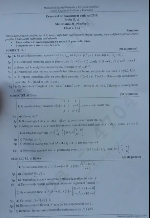 SIMULARE BAC 2017 MATEMATICĂ. Subiecte și barem de corectare la simulare bacalaureat 2017 matematică