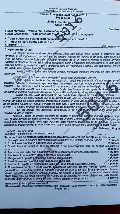 SIMULARE BAC 2017 ROMÂNĂ. Subiecte și barem REAL și UMAN, clasele a XI-a și a XII-a, la simulare bacalaureat