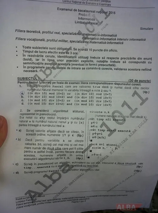 SIMULARE BACALAUREAT 2015. Subiecte la ultima probă scrisă pentru elevii de clasa a XII-a