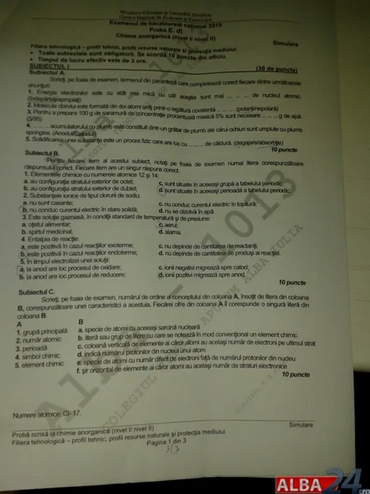 SIMULARE BACALAUREAT 2015. Subiecte la ultima probă scrisă pentru elevii de clasa a XII-a