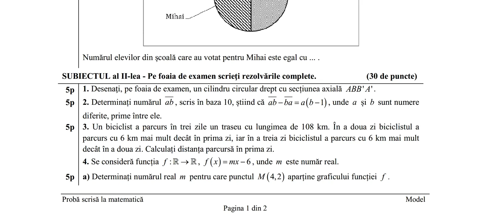 SIMULARE EVALUARE NAȚIONALĂ 2017. Subiecte și barem la proba de joi la matematică, clasa a VIII-a