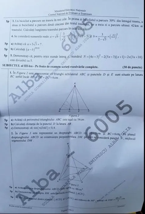 SIMULARE EVALUARE NAȚIONALĂ 2018. SUBIECTE și BAREM la matematică, clasa a VIII-a