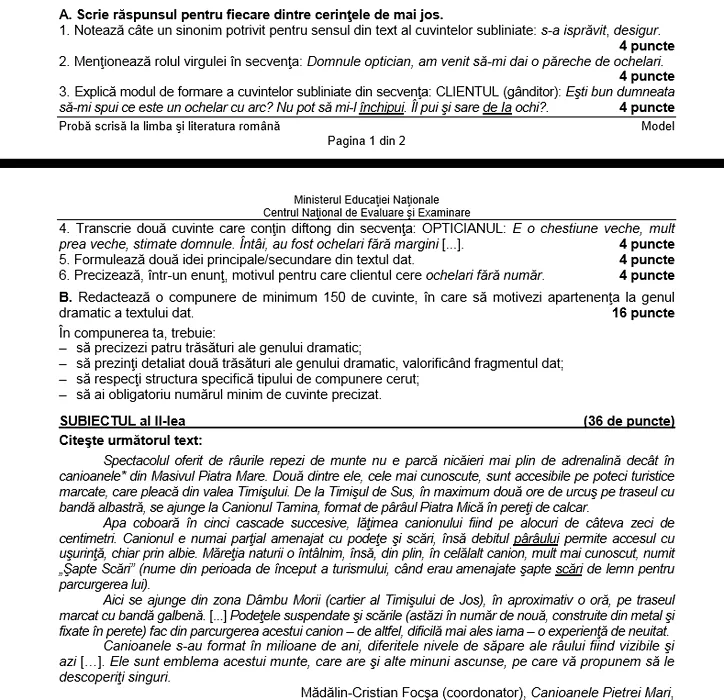 SIMULARE EVALUARE NAȚIONALĂ 2018. SUBIECTE și BAREM la română, clasa a VIII-a