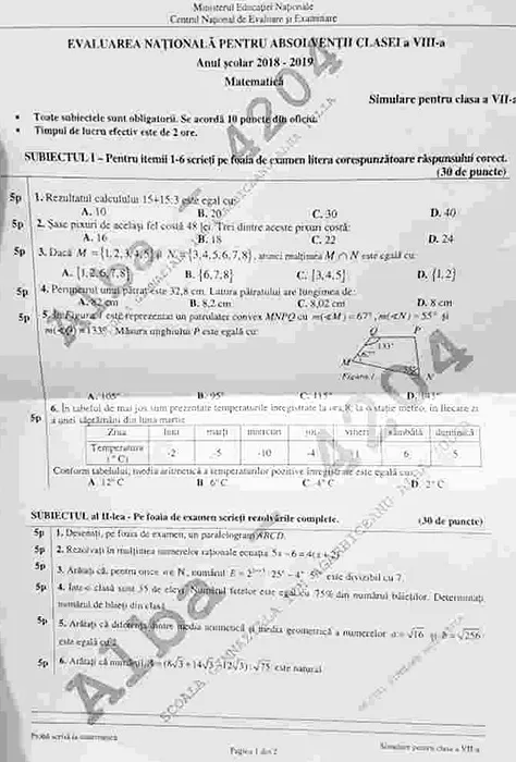 Simulare Evaluare Națională 2019: Elevii claselor VII-VIII susțin, astăzi, proba la matematică
