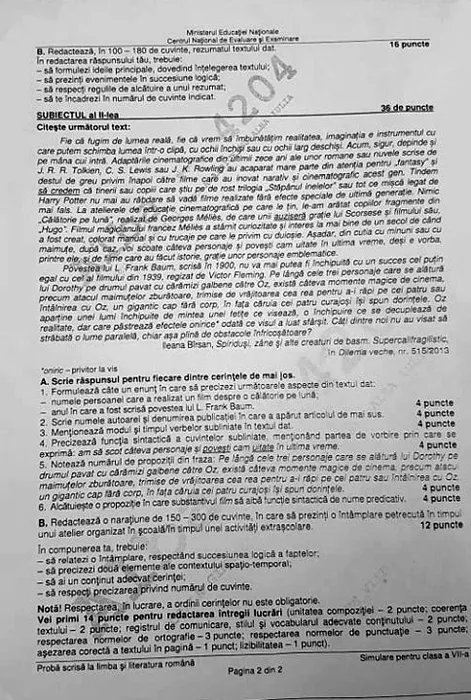 Simulare Evaluare Națională. SUBIECTE LA LIMBA ROMÂNĂ. Pentru prima dată au participat și elevii clasei a VII-a