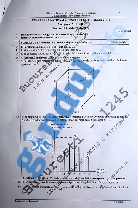 GALERIE FOTO: SIMULARE MATEMATICĂ – EVALUARE NAȚIONALĂ 2013 BUCUREȘTI. 12.600 de elevi susțin vineri examenul. SUBIECTE și BAREM