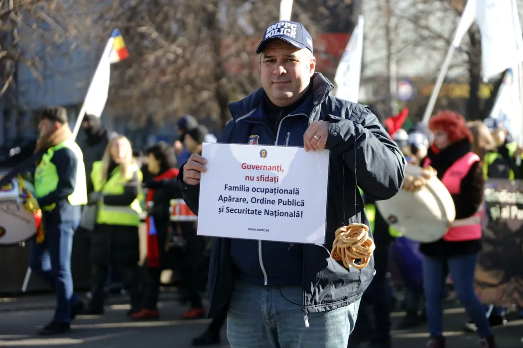 Sindicaliştii din apărare, ordine publică şi siguranţă naţională protestează față de Ordonanța trenuleț / Circulație blocată la Piața Unirii