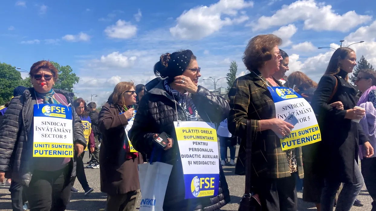 Sindicaliștii din învățământ protestează în Piața Victoriei. Profesorii cer SALARII mai mari și amenință cu GREVA GENERALĂ – FOTO&VIDEO