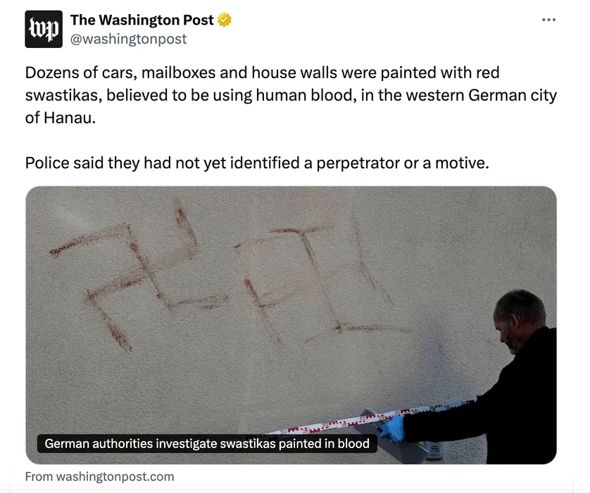 Șoc în presa internațională: un român a fost arestat în Germania după ce a desenat cu sânge zeci de svastici pe mașini și case
