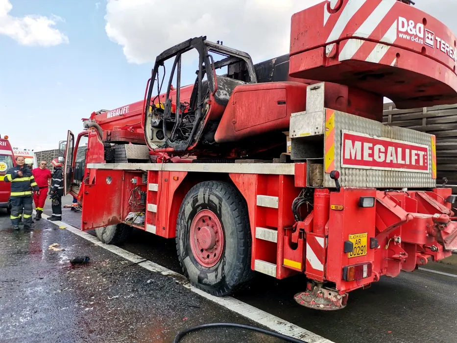 FOTO | Șoferul unei automacarale, accidentat mortal în timp ce stingea incendiul izbucnit în cabina utilajului