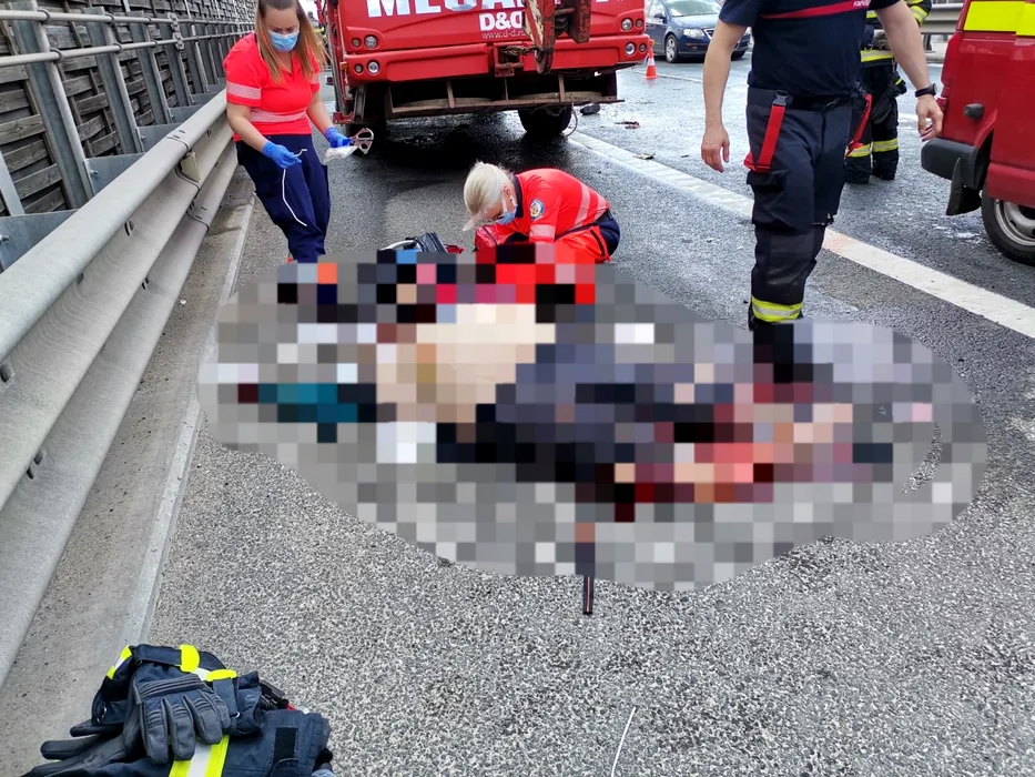 Din păcate, șoferul lovit pe A1 nu a mai putut fi salvat de medici/ FOTO - ISU Arad