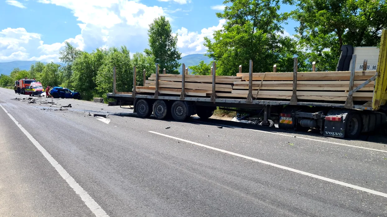 Șoferul unei mașini de teren a murit, după ce a intrat pe contrasens și a lovit un camion cu lemne pe un drum din județul Hunedoara (FOTO – VIDEO)