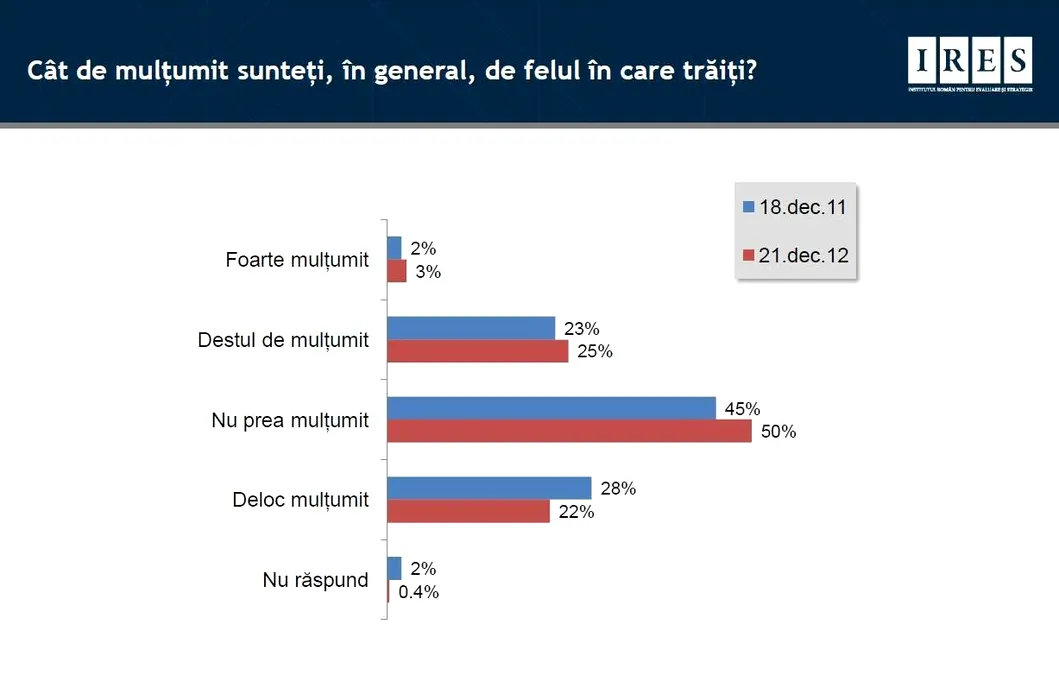 SONDAJ IRES.Lipsa locurilor de muncă și criza politică, principalele motive de îngrijorare ale românilor în 2012