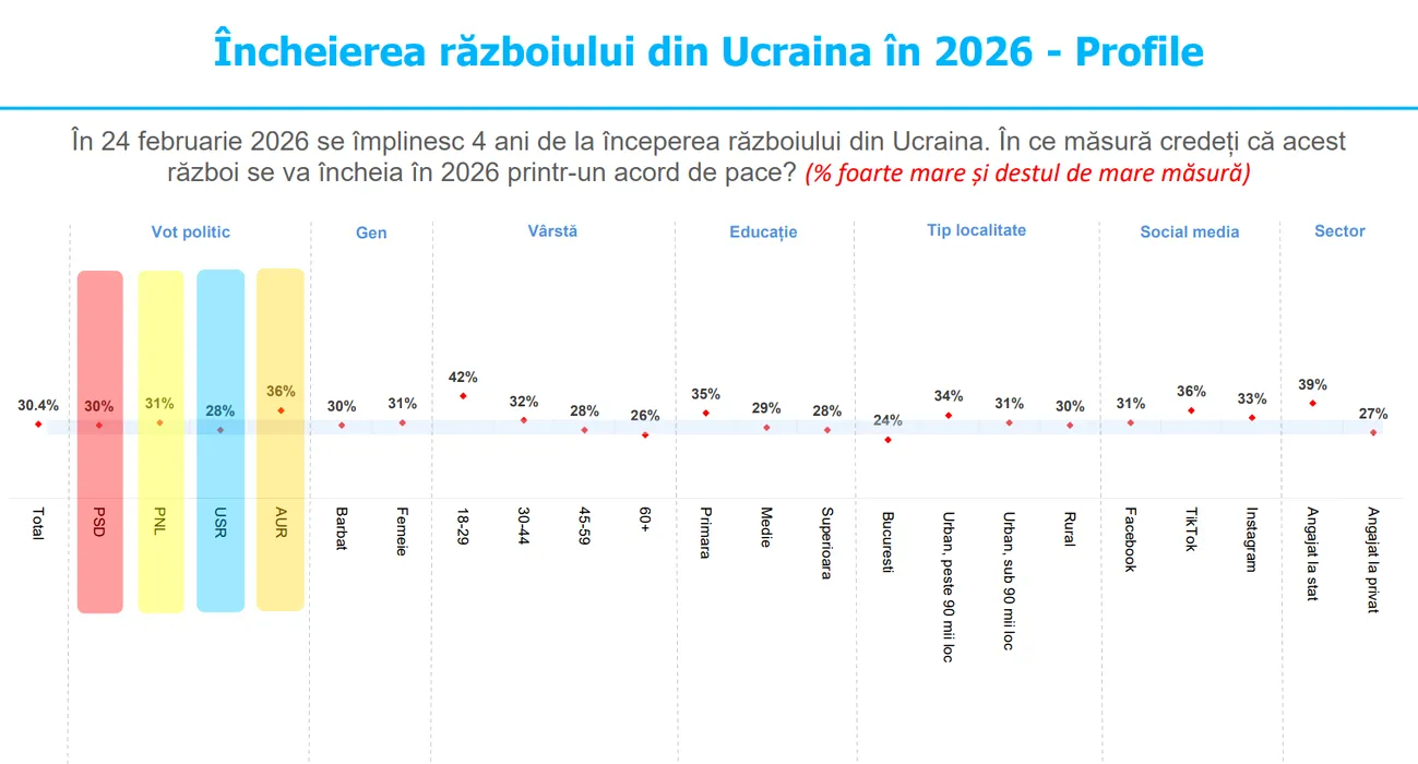 SONDAJ la 4 ani de război în Ucraina: Doar 3 din 10 români cred că războiul de la graniță se va încheia în 2026 printr-un acord de pace