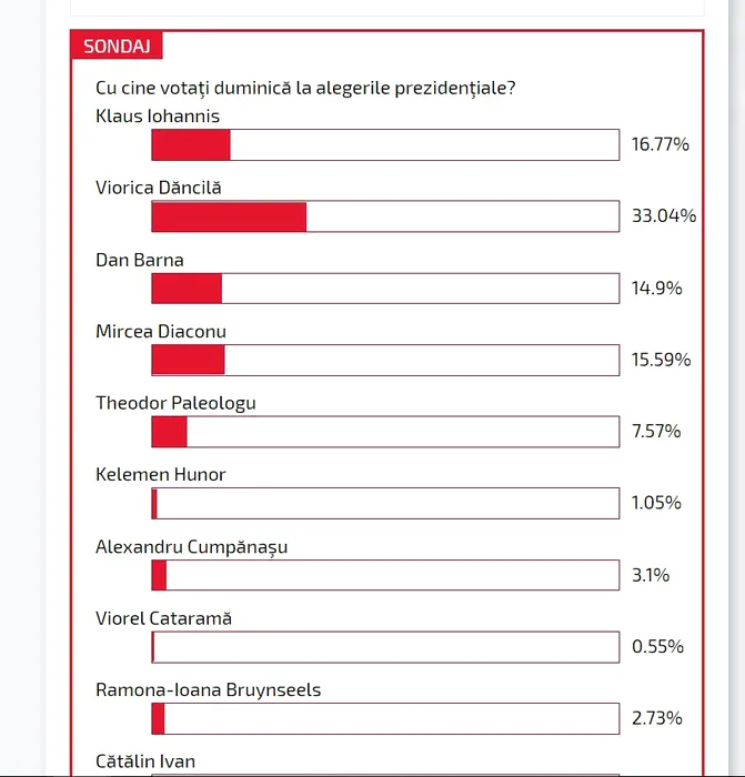 Sondaj realizat de România TV, la alegeri, până la ora 10:00: Dăncilă 33,04%, Iohannis 16,77%, Cumpănașu 3,1% – FOTO