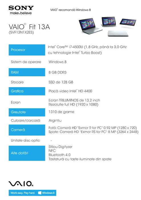 Sony a lansat în România ultimele sale modele de computere portabile, cu sistem de operare Windows 8
