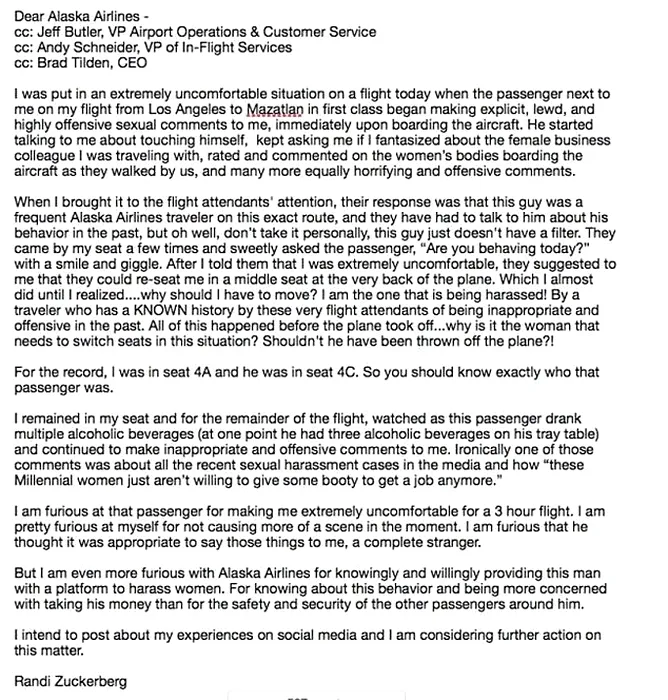 Sora lui Mark Zuckerberg susține că a fost agresată sexual în timpul unei călătorii cu avionul