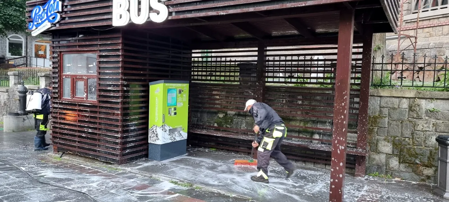 Stațiunea Sinaia, spălată cu detergent după valul de turiști din weekend. „Locurile des frecventate devin murdare” | GALERIE FOTO