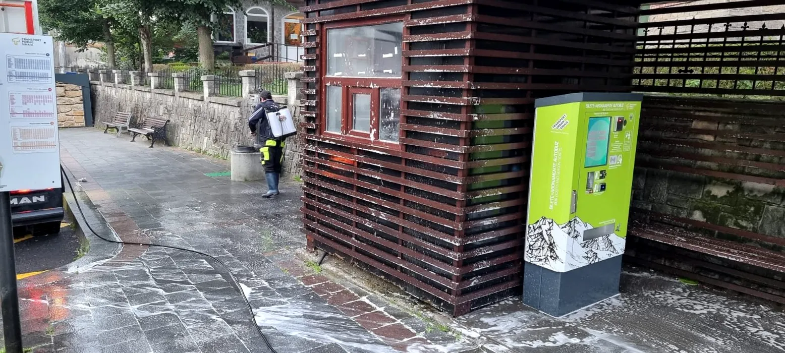 Stațiunea Sinaia, spălată cu detergent după valul de turiști din weekend. „Locurile des frecventate devin murdare” | GALERIE FOTO