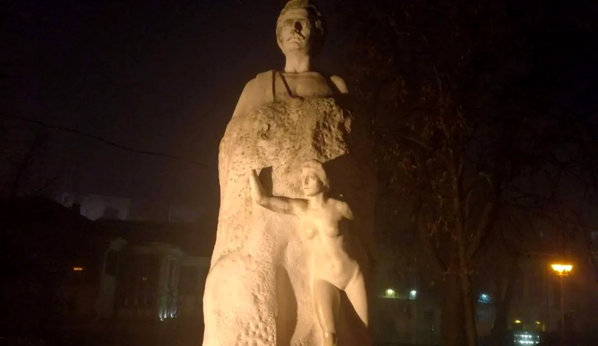 Statuia lui Eminescu din Galați, păzită zi și noapte. Aproape în fiecare an, mâna muzei poetului dispare