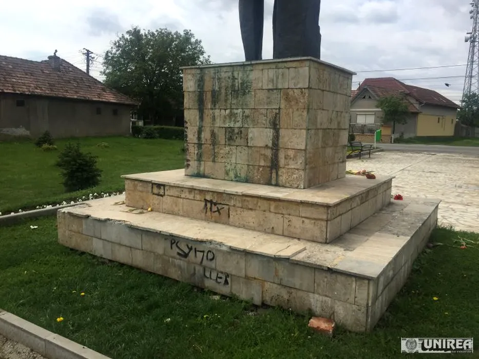 Statuia lui Lucian Blaga, vandalizată. Mesajele obscene scrise pe soclu. Galerie FOTO