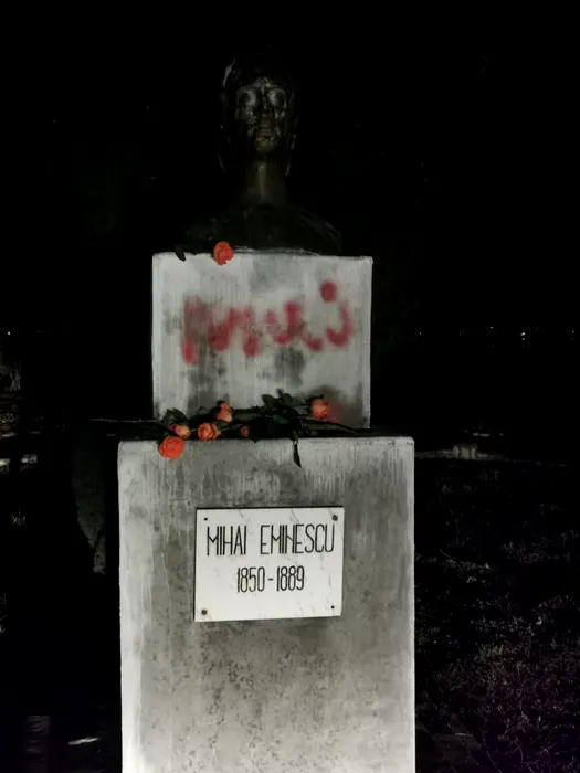 Bustul poetului Mihai Eminescu, amplasat într-un parc din Orșova, a fost vandalizat. Sunt scrise texte obscene cu vopsea roșie