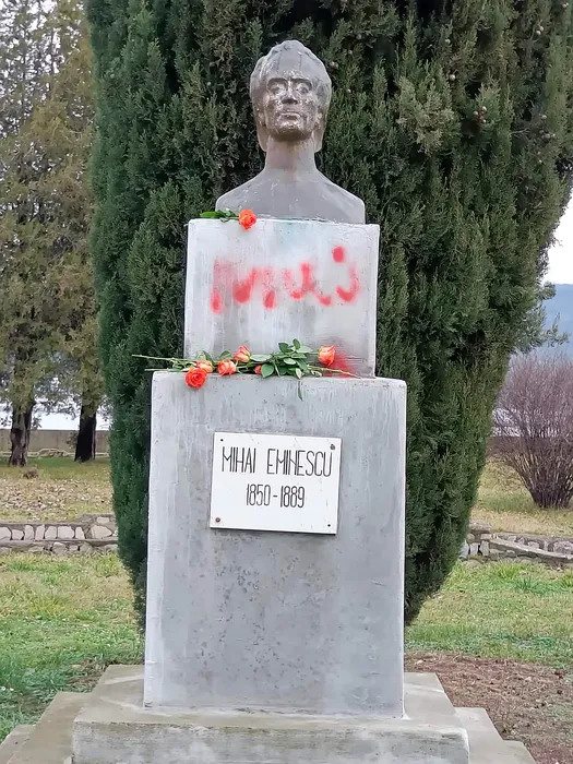 Bustul poetului Mihai Eminescu, amplasat într-un parc din Orșova, a fost vandalizat. Sunt scrise texte obscene cu vopsea roșie