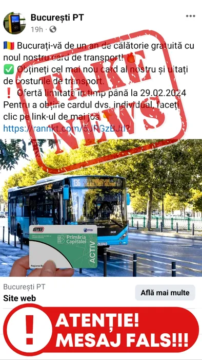 STB: „Un mesaj fals legat de un card de călătorii gratuit circulă pe Facebook. Am anunțat Poliția”