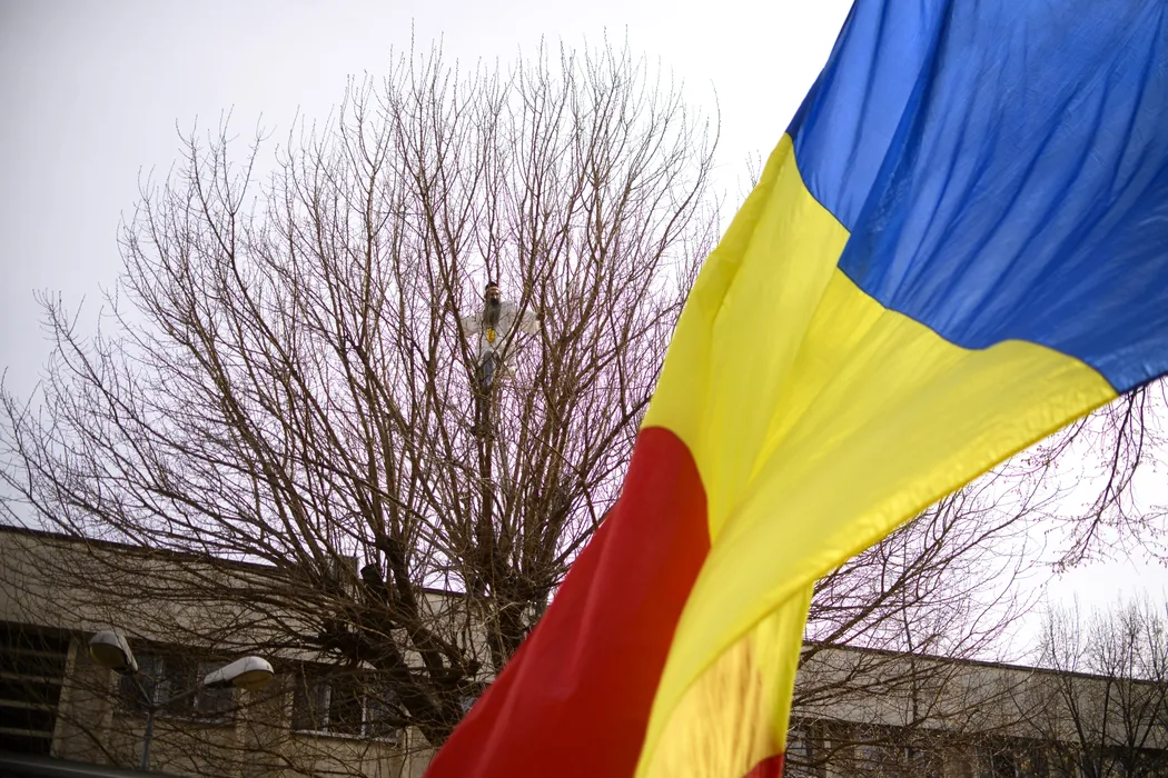 GALERIE FOTO: „STEGARUL dac” Cătălin Avrămuță s-a urcat într-un copac din fața Arestului Central, unde se află Bogdan Peșchir. Cere eliberarea lui BogPR