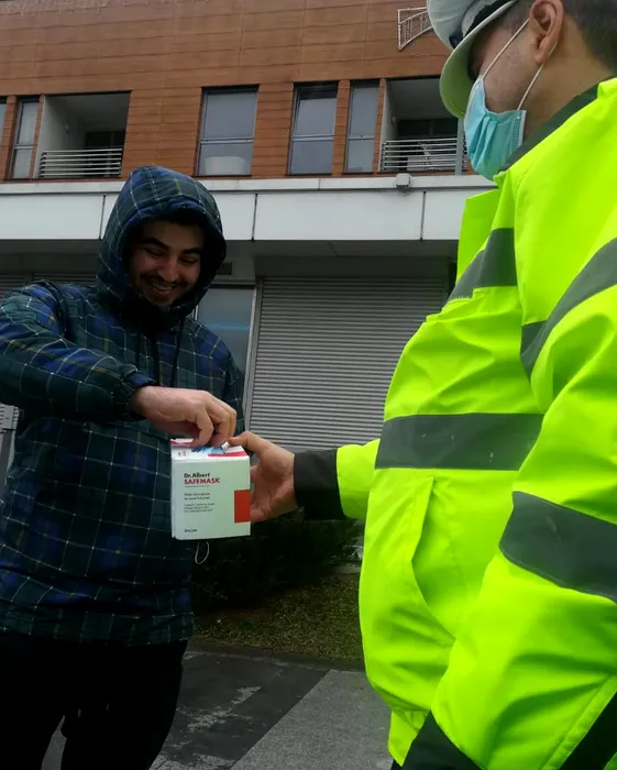 Polițiștii locali din Bacău împart măști de protecție persoanelor care nu poartă / Sursă FOTO: Lucian Daniel Stanciu Viziteu - Facebook