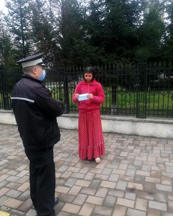 Polițiștii locali din Bacău împart măști de protecție persoanelor care nu poartă / Sursă FOTO: Lucian Daniel Stanciu Viziteu - Facebook