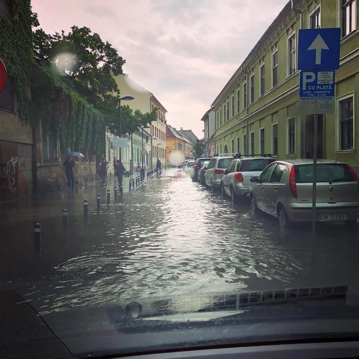 Străzi și subsoluri din Cluj-Napoca, INUNDATE în urma unei ploi torențiale