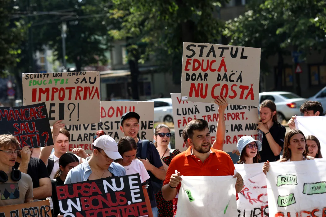 Mai multi studenti protesteaza în fata Prefecturii Timis impotriva planurilor noului guvern de a reduce fondurile pentru bursele studentesti, joi, 26 iunie 2025, in Timisoara. DANI AMARIEI / MEDIAFAX FOTO