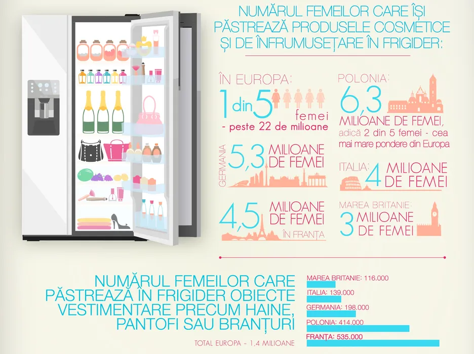 STUDIU. Aproape 22 de milioane de femei din Europa își păstrează în frigider produsele cosmetice