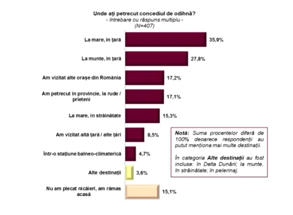 STUDIU. Unde și-au petrecut concediul de vară cei mai mulți români