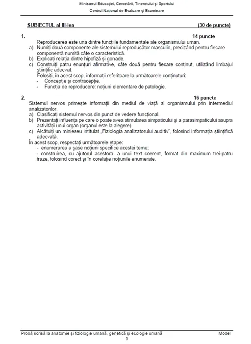 SUBIECTE BAC 2013 BIOLOGIE. Modele de subiecte pentru BIOLOGIE la BAC 2013