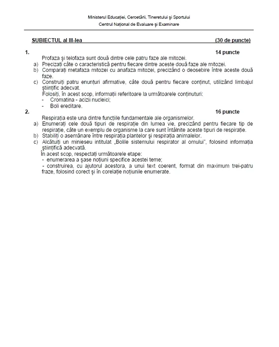 SUBIECTE BAC 2013 BIOLOGIE . Subiecte și BAREM BIOLOGIE BACALAUREAT 2013, publicate de EDU.RO