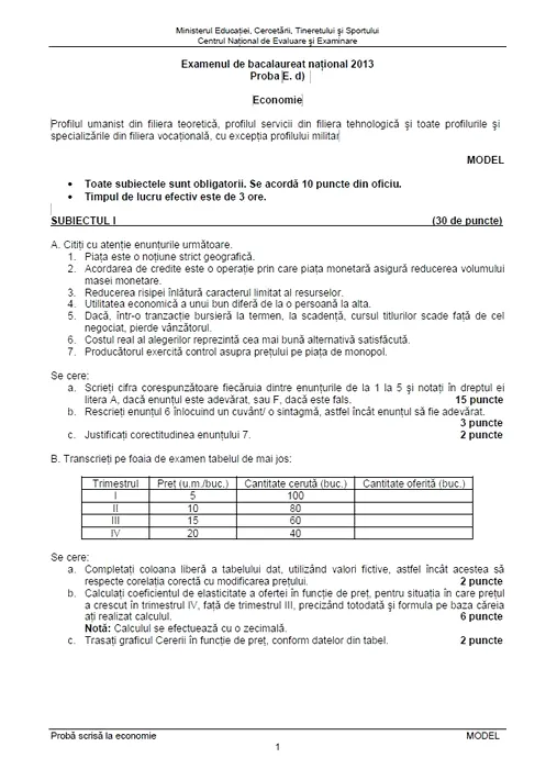 SUBIECTE BAC 2013 ECONOMIE. Proba de economie nu a fost la mare căutare la BACALAUREAT 2013