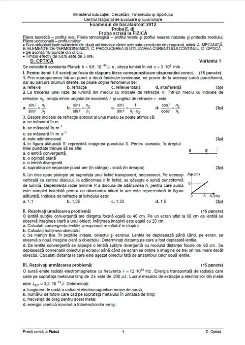 SUBIECTE BAC 2013 FIZICĂ. 14.600 de absolvenți de liceu au ales FIZICA la BACALAUREAT 2013