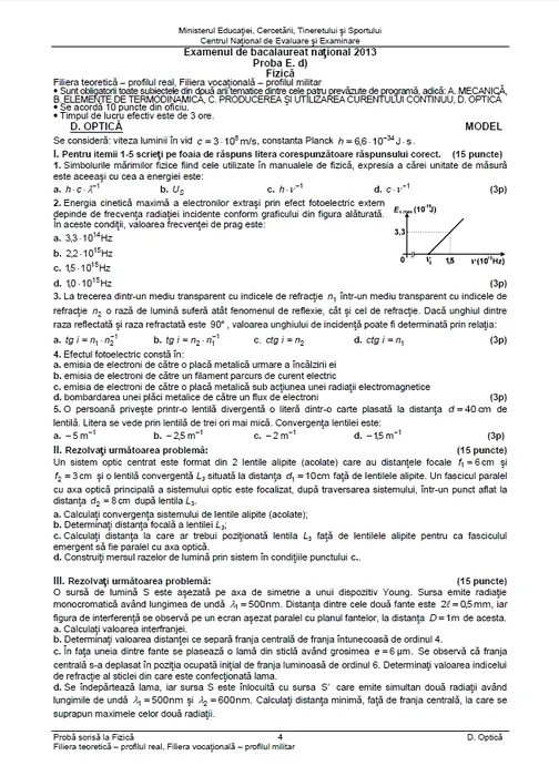 SUBIECTE BAC 2013 FIZICĂ. 14.600 de absolvenți de liceu au ales FIZICA la BACALAUREAT 2013