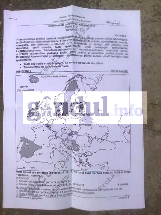 SUBIECTE BAC 2013 GEOGRAFIE pe EDU.RO. Subiecte la BACALAUREAT 2013 – proba la alegere vor fi publicate in timp real pe Gândul