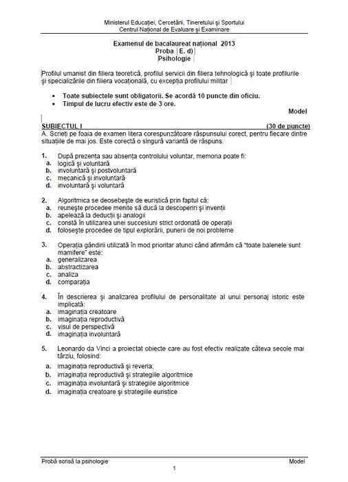 SUBIECTE BAC 2013 PSIHOLOGIE. Câți elevi au ales psihologia ca probă de bacalaureat 2013