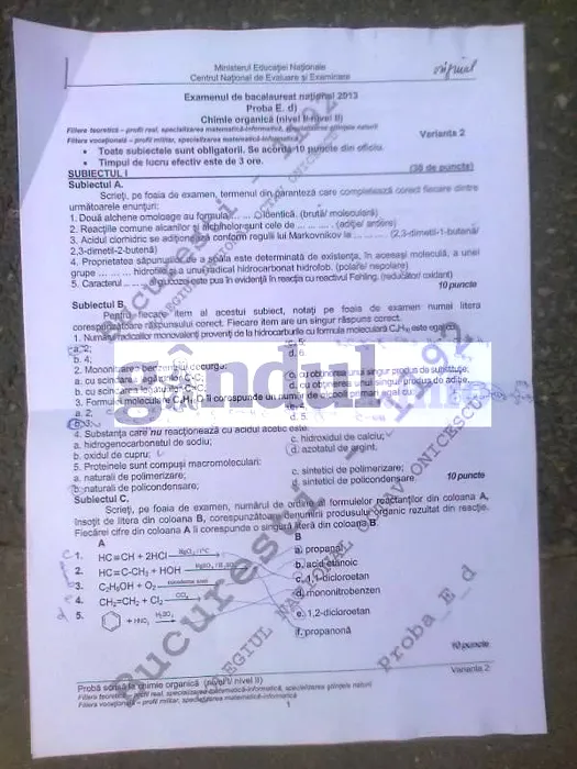 SUBIECTE BAC 2013. SUBIECTE și BAREM BACALAUREAT 2013 la GEOGRAFIE, BIOLOGIE, FIZICĂ, CHIMIE, INFORMATICĂ, în timp real pe Gândul. Absolvenții de liceu susțin azi proba la alegere