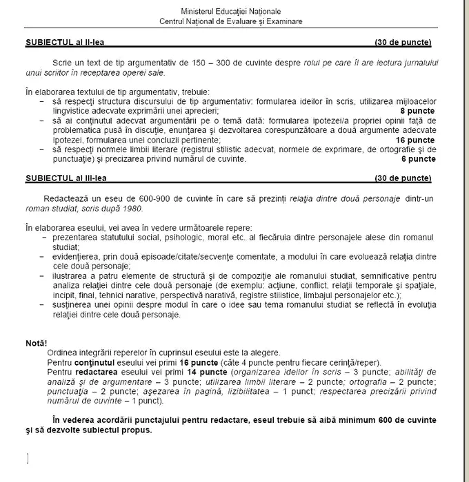 SUBIECTE BAC 2014. Modele de subiecte pentru BACALAUREAT 2014, română, publicate pe edu.ro