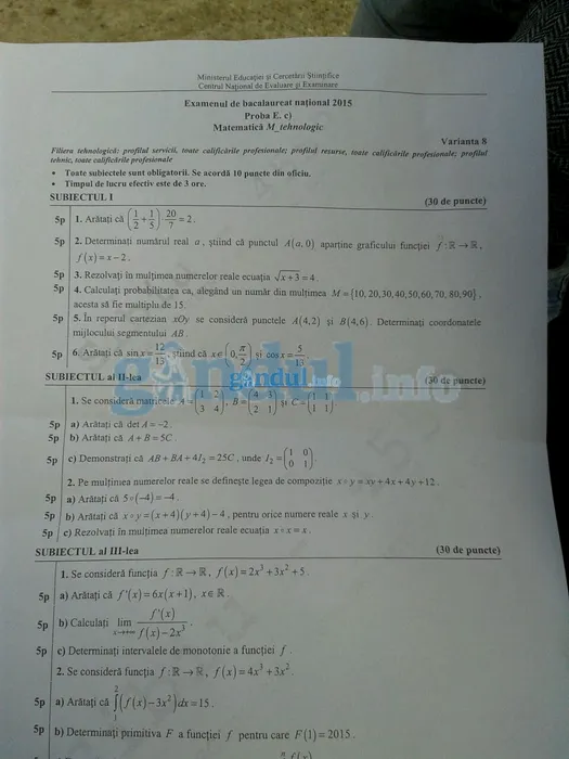 SUBIECTE BACALAUREAT 2016 MATEMATICĂ. Cum se rezolvau subiectele