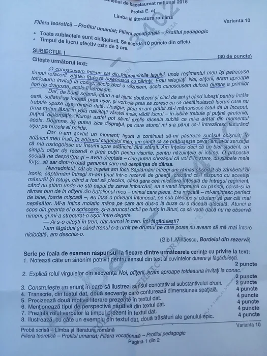 SUBIECTE BACALAUREAT 2016 ROMÂNĂ. Ce subiecte au picat la BAC 2016 la română, la UMAN și REAL, sesiunea de toamnă