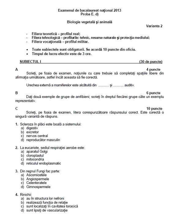 SUBIECTE BIOLOGIE BAC 2013, sesiunea toamnă. Ce pot primi elevii care dau ultima probă de BACALAUREAT 2013