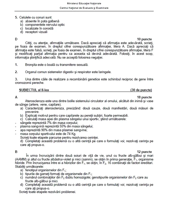 SUBIECTE BIOLOGIE BAC 2013, sesiunea toamnă. Ce pot primi elevii care dau ultima probă de BACALAUREAT 2013
